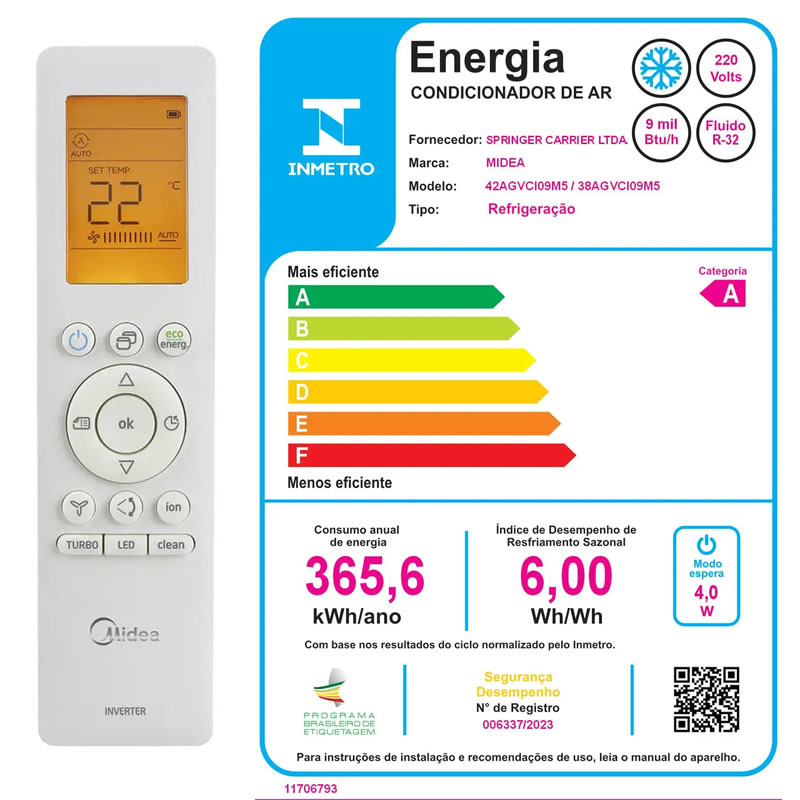 Ar Condicionado Midea 9000 Btus, Split Hi Wall Inverter, Frio Ai Ecomaster, 220V