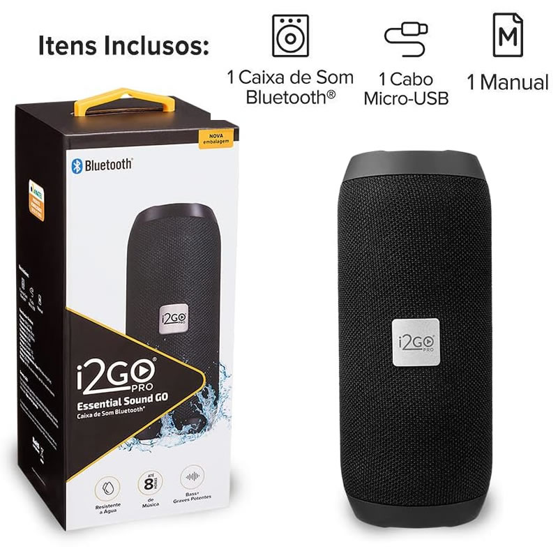 I2GO, Caixa De Som Bluetooth Essential Sound Go, 10W RMS, Resistente à Água, Preto