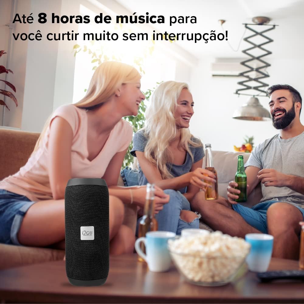 00048 Caixa de Som i2GO Essential Sound Go: Marca i2Go, Essential Sound Go, Caixa De Som com Bluetooth, 10W RMS, resistente à Água, Cor Preto, Potência máxima de saída dos alto-falantes 100 Watts, Tecnologia de conectividade Bluetooth, USB, Auxiliar, Modo de saída de áudio [Estéreo, Mono], Tipo de montagem Suporte de mesa. A Caixa de Som Bluetooth Essential Sound Go i2GO possui 10W de potência RMS e Bateria de até 8h; Conexão Bluetooth 5.0, Entrada para Cartão Micro-SD, Entrada para Cabo Auxiliar 3,5mm e Entrada USB para Pen Drive; Vale destacar que a Caixa de Som Bluetooth Essential Sound Go 10W é resistente à água (IPX4 – Não Mergulhar!) e é perfeita para lhe acompanhar na piscina e na praia com os amigos; Com seus alto-falantes…