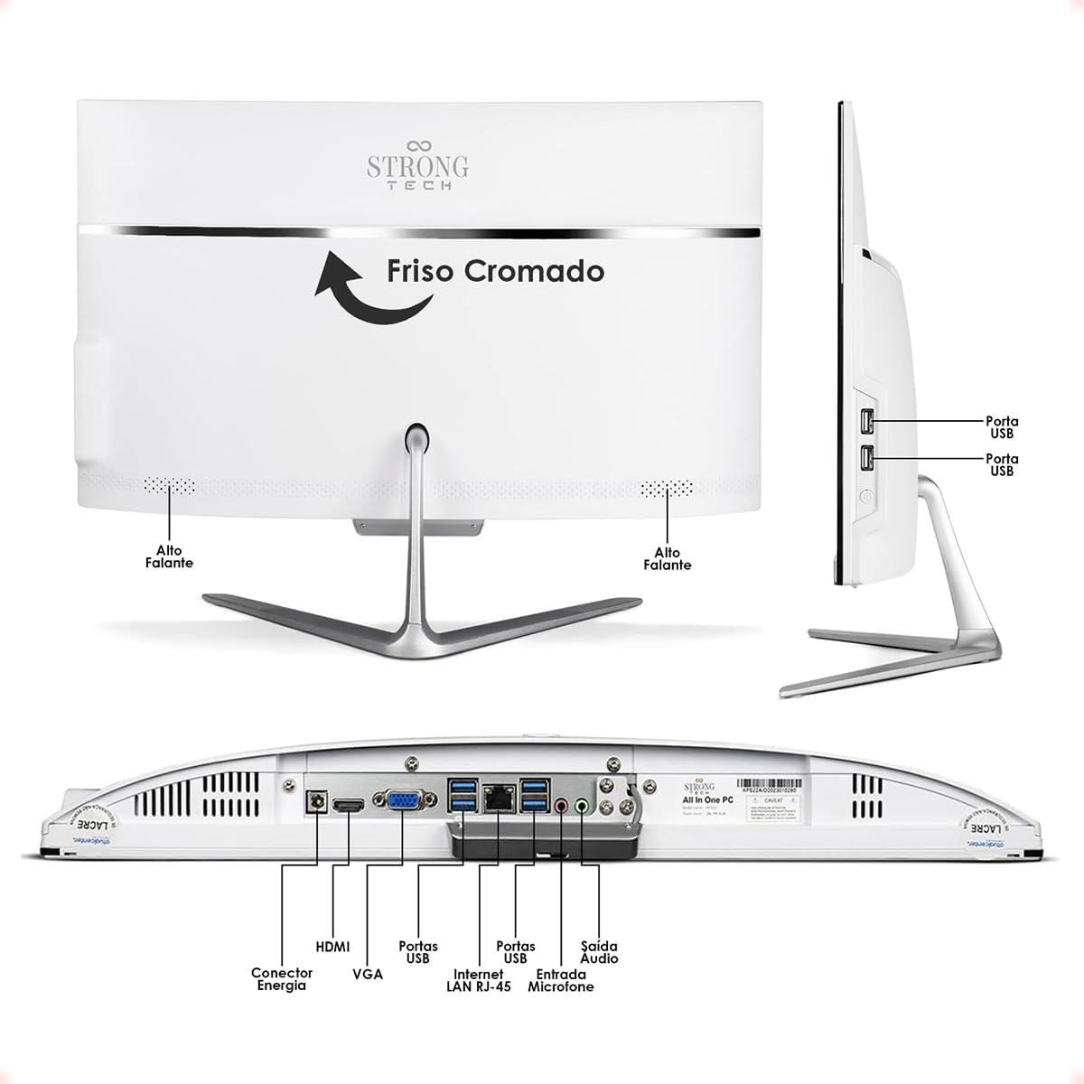 Computador Completo All In One Intel Core i7 21,5″ Full HD 16GB SSD 512GB 4 Núcleos Super Turbo Hdmi Teclado e Mouse Strong Tech