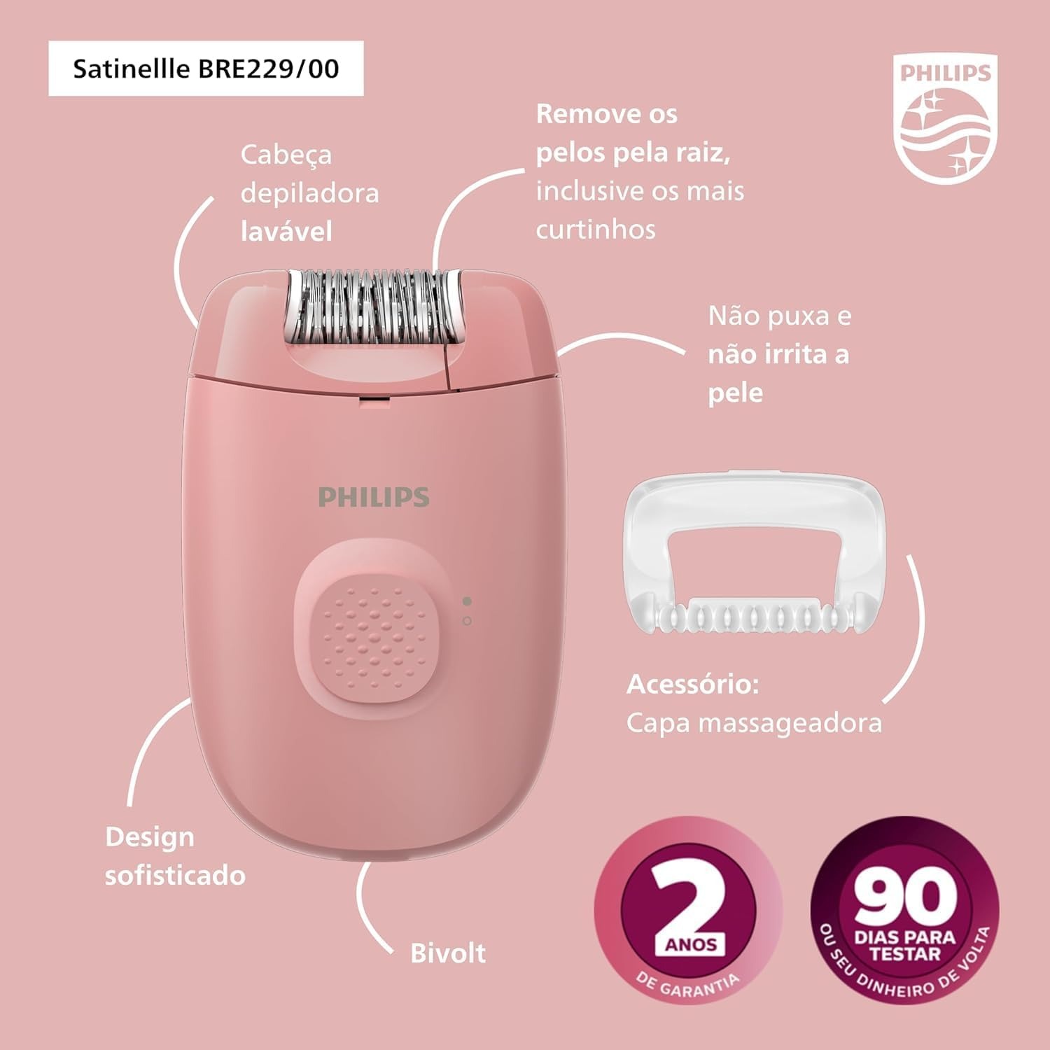 Depilador Philips Satinelle com 1 Acessório BRE229/00 Rosa Bivolt